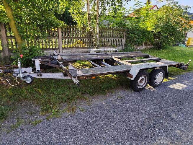 5Sprzedam lub zamienię przyczepę-platformę 5m x 2,4m do ukończenia instalacja elektryczna, możliwość zamiany na ...